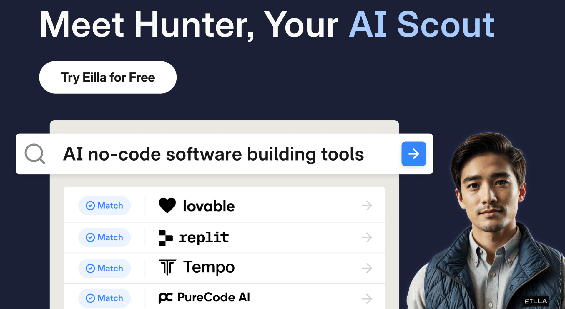 Meet Hunter, Eilla’s AI Scout. No more keyword guessing and sifting through lists with 100s of irrelevant companies. Just describe what you're looking for and let Hunter do the rest. How it works: