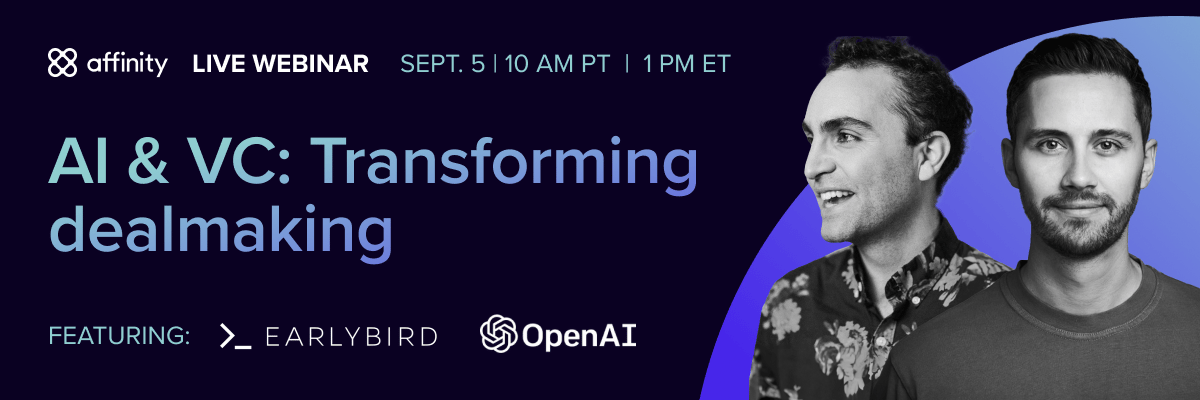 Join Affinity’s co-Founder Ray Zhou alongside Adam Perelman, Engineering Manager at OpenAI, and myself 👋🏻 to unpack the best ways of incorporating AI in private capital workflows. Tune in on September 5.