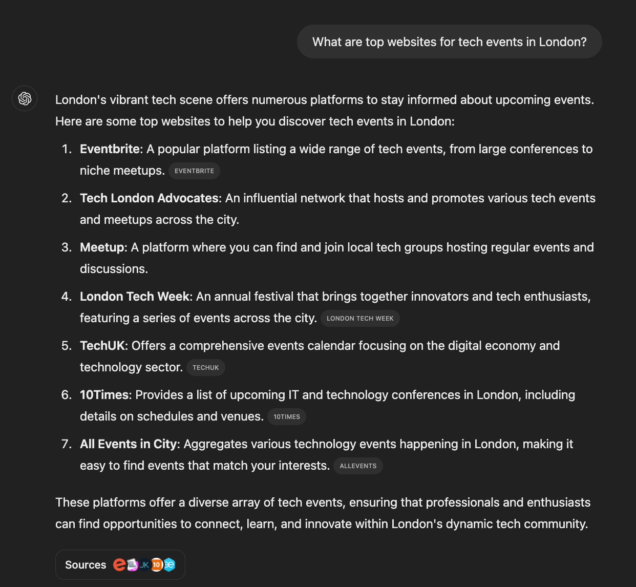 Weβre kicking off by finding the right event platforms for your city via ChatGPT: