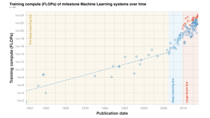 The second catalyst was the publication of a landmark paper in 2017 by a team of researchers from Google. The paper outlined a new architecture for deep learning models that relied on attention mechanisms in a novel way, eschewing previous methods (recurrent networks) to deliver superior performance. Transformer-based models lend themselves to parallelism and are therefore able to derive maximum value from GPUs, requiring less time to train. These two seminal developments culminated in Transformer-based ML models flourishing ever since, incurring significantly more compute to scale.