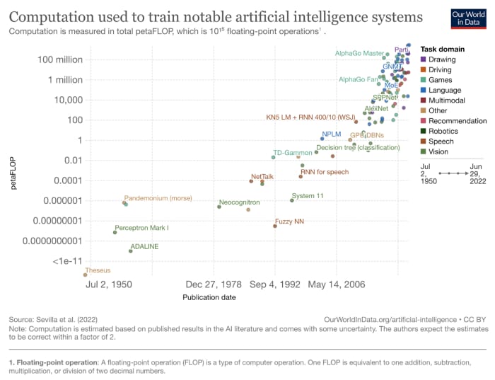 Two milestones account for much of the inflection that coincided with the emergence of the research labs. The first was in 2012, when Alex Krizhevsky of the University of Toronto demonstrated the superiority of deep learning neural networks over state-of-the-art image recognition software, having trained the model on GPUs that were capable of handling trillions of math operations. From this point onwards, ML models had the computational capacity to scale, leveraging the advantageous properties of GPUs such as parallelism to perform compute-intensive tasks like matrix multiplication that are at the core of AI models. GPUs are leaps ahead of others ASICs like Google’s TPUs in terms of market share (within GPUs, Nvidia has the lion’s share of the market, but more on that later), despite TPUs being better for the training of many models. In short, GPUs unlocked a new paradigm of computing capacity.