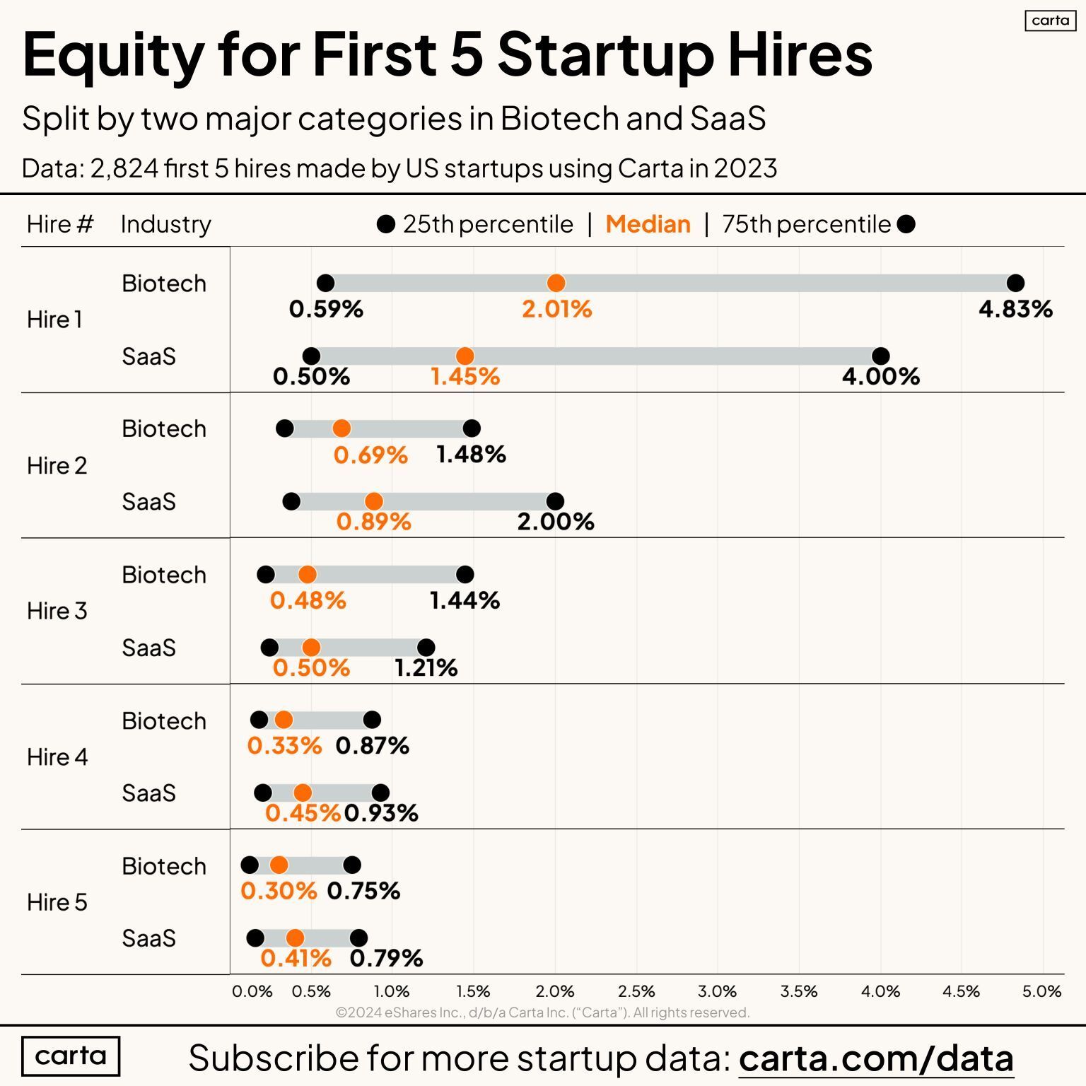 Cartaβs Peter Walker analyzes the question every founder wrestles with: Who should your first hires be and how much equity should they get? Based on an analysis of successful startups, the answer often depends on balancing early technical needs with operational execution.
