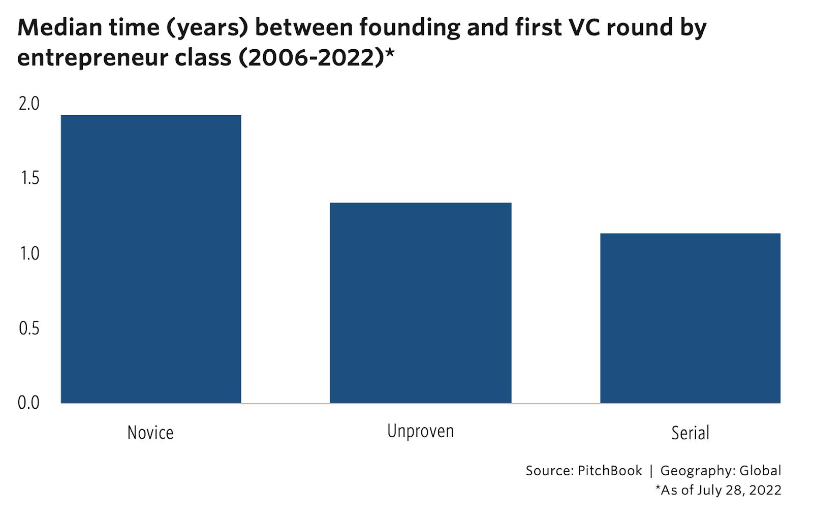 Only a matter of time: Novice founders take almost 2 years to attract first funding for a new venture, while unproven (repeat but no exit) founders fare almost as well as serial founders with a previous successful exit.
