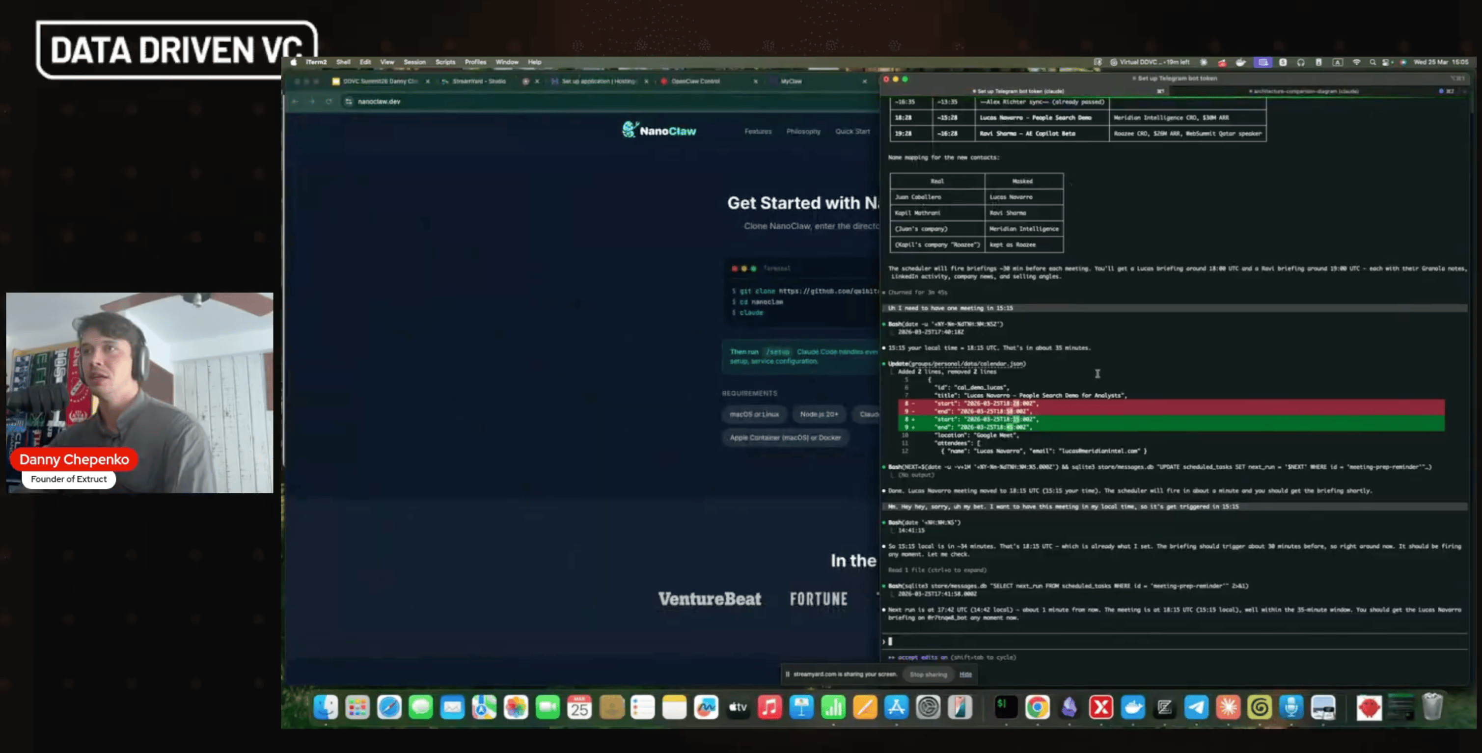 With NanoClaw, you generate the implementation code alongside Claude as part of setup, so you can read what is actually running in your environment. Danny shows this live step-by-step.