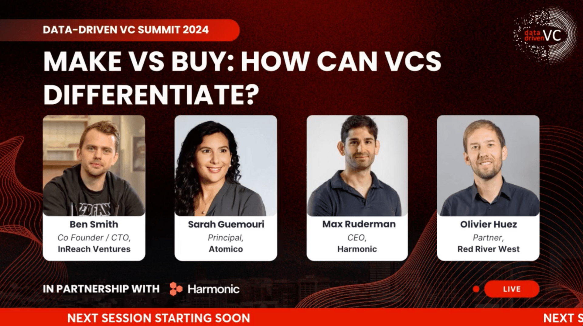 Today is a special episode as we share one of the most watched sessions from the virtual Data-Driven VC Summit 2024 with you. I was lucky to have Sarah from Atomico, Ben from InReach, Olivier from Red River West, and Max from Harmonic join me to discuss their perspectives on make vs buy, and how VCs can differentiate and gain a competitive edge in the future.