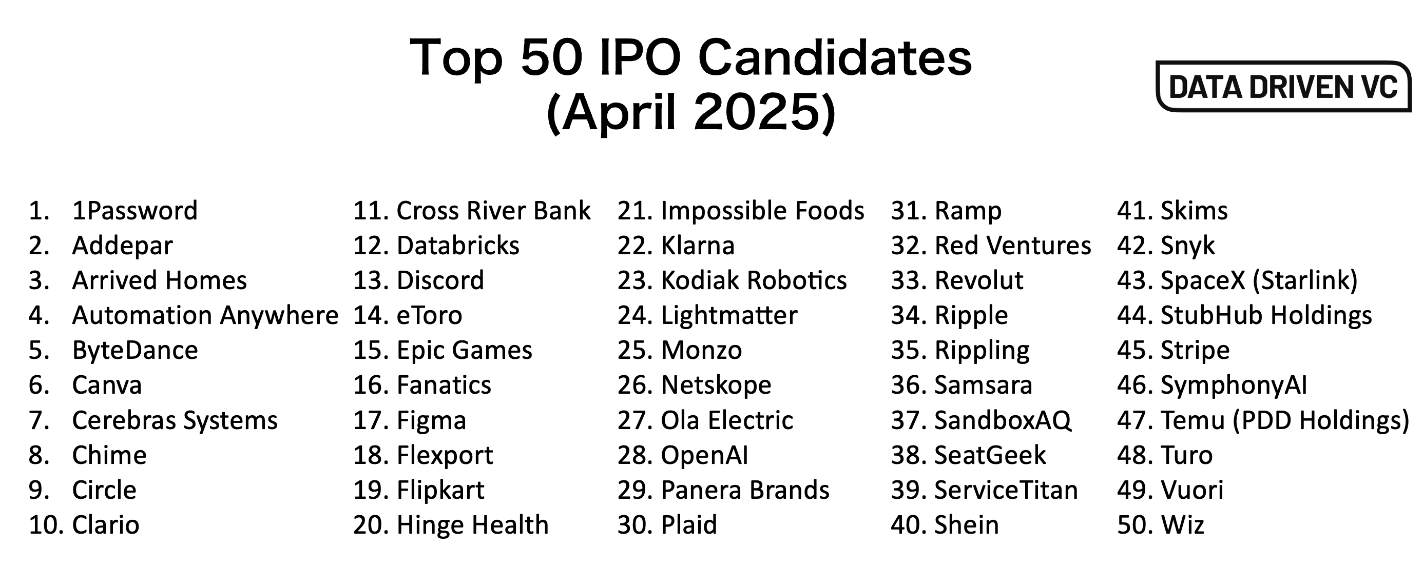 This being said, let’s look at the top 50 IPO candidates for 2025 & 2026.