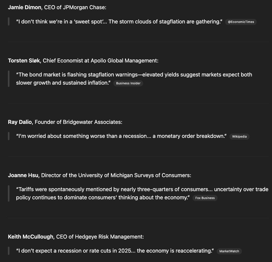 With these two quantitative measures at hand, let’s look at more qualitative indicators in form of quotes from economic, finance, and political leaders throughout the last 30 days.