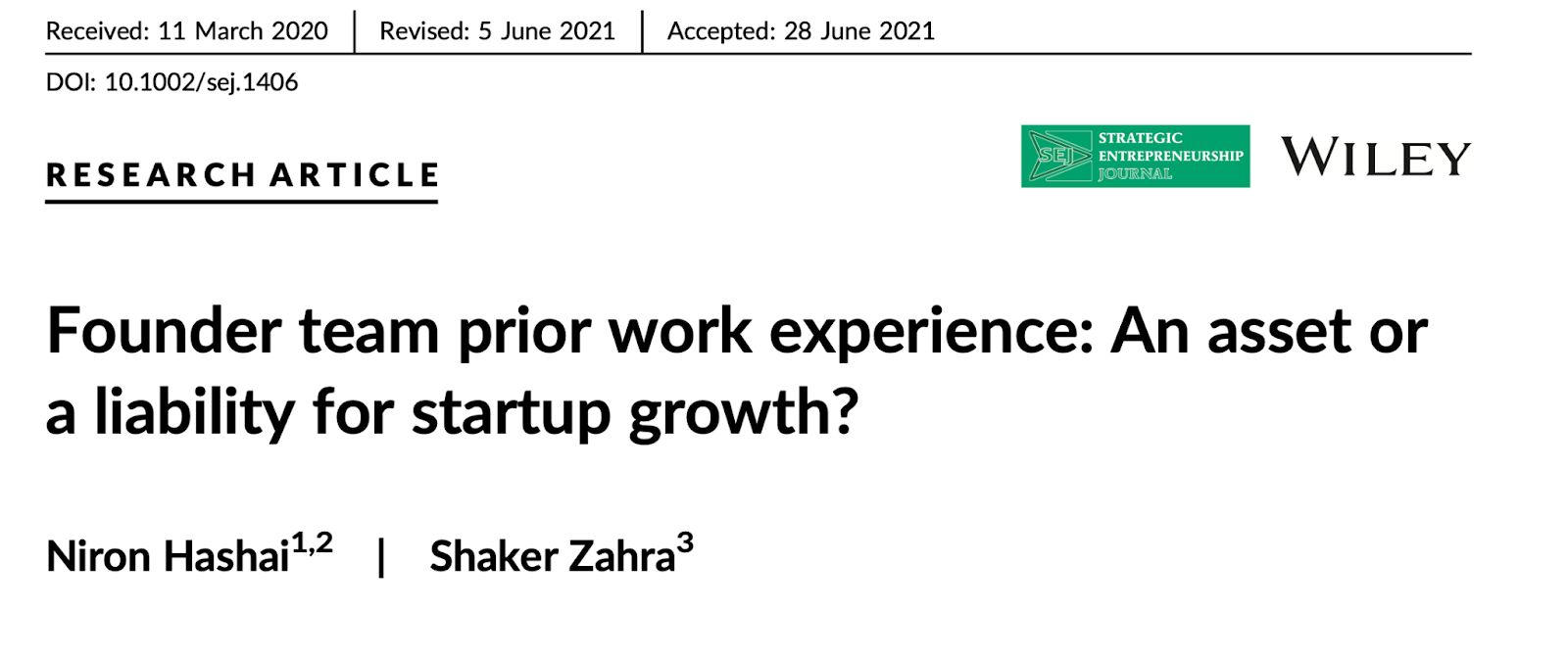 A study by Niron Hashau and Shaker Zahar fundamentally analyses different dimensions of founder work experience and startup success. They look into the effects of a founder’s experience in the same and different verticals as their startups.