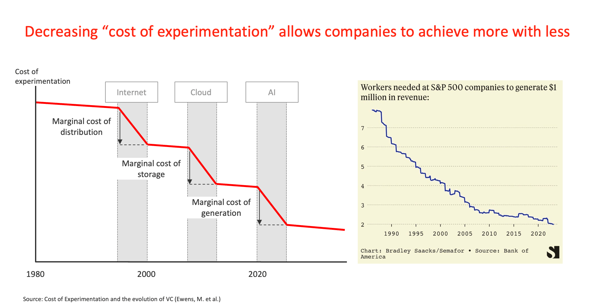 In early 2023, shortly after the launch of ChatGPT, I wrote a piece about “The impact of AI on the cost of starting and running a business”. When brainstorming the potential impact of AI on startups back then, I recalled a 2018 study about “the cost of experimentation”: