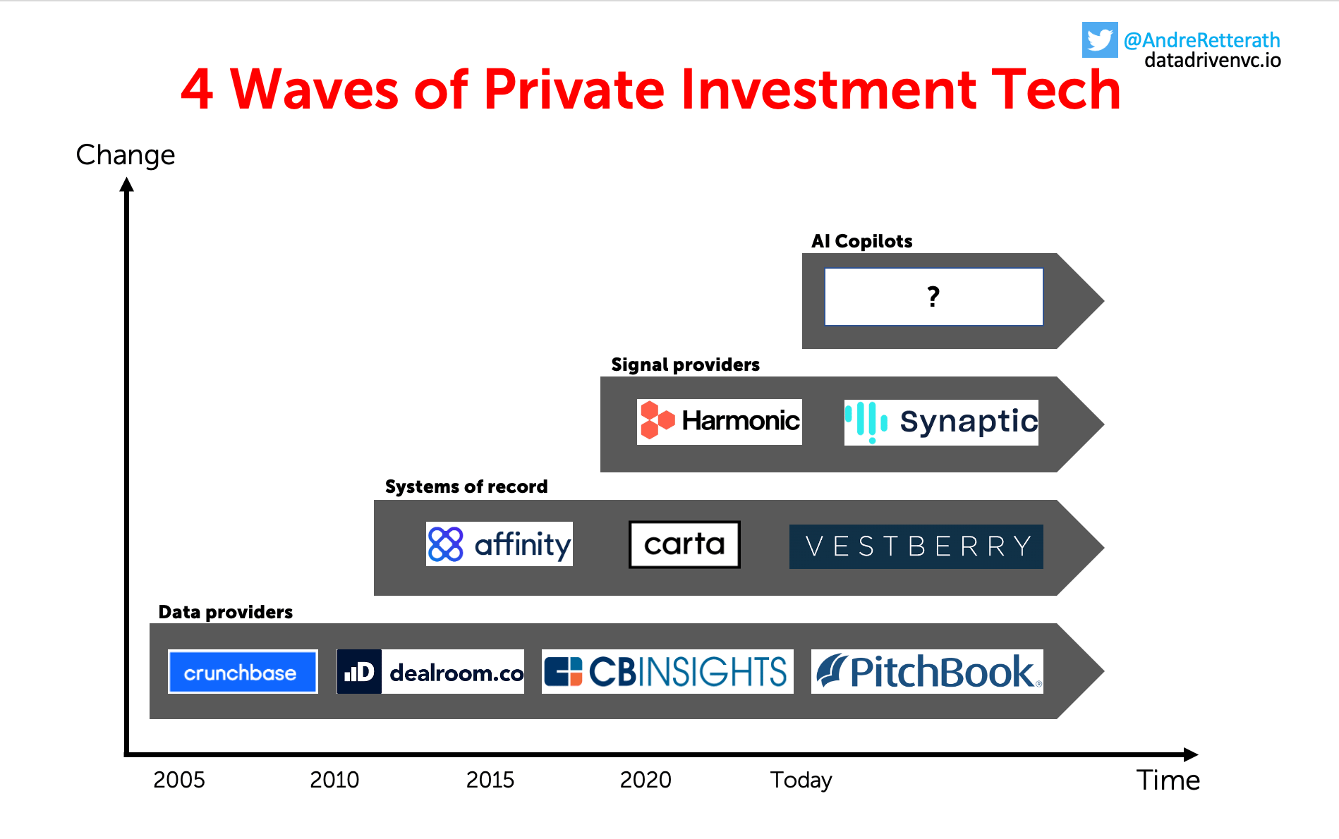 1st wave: Private company and fund data providers like Crunchbase, Dealroom, Pitchbook, Preqin, and others