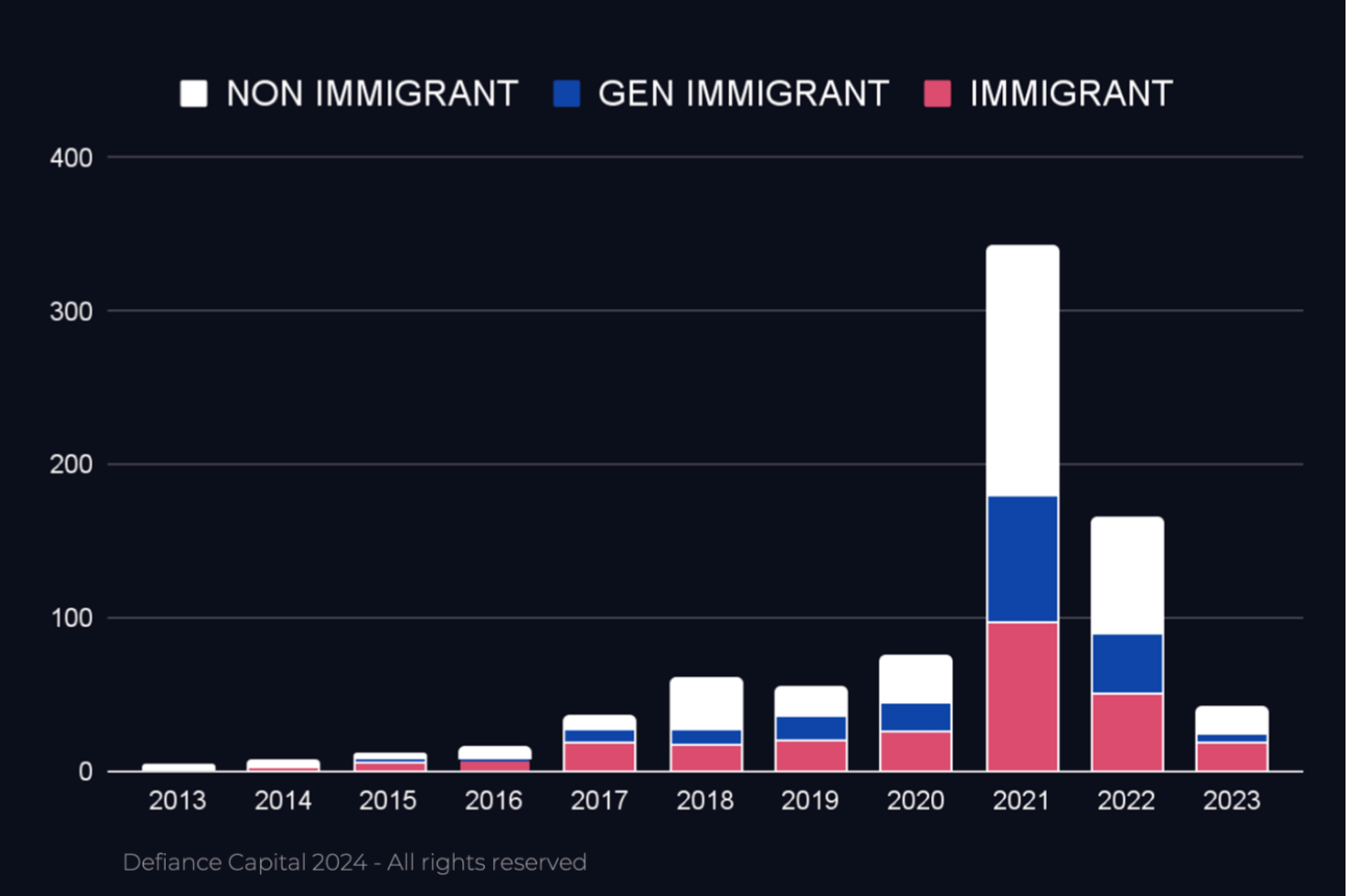 Diverse Origins: A striking 70% of unicorns are founded by what the study terms "underdog founders" - a dynamic mix of immigrants, women, and people of colour, marking a shift from the once male-dominated arena.
